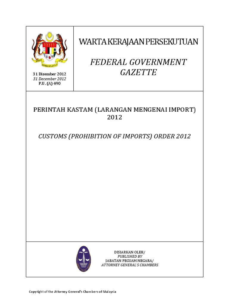 P U A 490 Larangan Import Final Warta 311212 Pdf